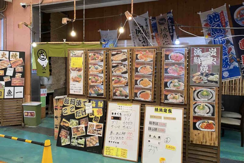 市場内の寿司・海鮮店。海鮮丼、にぎりなどが人気。牡蠣やあら汁、メヒカリ唐揚げなどの一品料理も好評で、夕方まで営業している点も市場内では貴重。ネタの鮮度や種類の豊富さを評価する声がある一方、「ネタが薄い」「作り置き感がある」との口コミもあり、評価が分かれる。タブレット注文やセルフサービスの手軽さも特徴。 【営業時間】平日11:00~17:00/土日10:30~18:15 【定休日】火曜日・水曜日