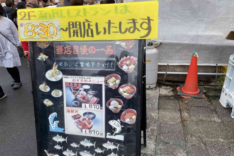 市場内の人気食堂。入店時に注文・会計を済ませる先払い制で、海鮮丼や天丼、マグロステーキ丼、だし汁付き海鮮丼などが評判。天丼や煮魚は揚げたてで味・ボリュームともに好評で、海鮮丼も出汁をかけて味の変化を楽しめると評価が多い。まかない丼はネタの量に物足りなさを感じる声も。 【営業時間】平日9:30~15:30/土日祝8:15~16:00 【定休日】木曜日・金曜日