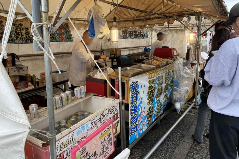 市場では、生牡蠣やかに汁、イイダコ焼き、イカ焼き、貝類の串焼きなど、浜の香りが広がる食べ歩きグルメが充実しています。新鮮な魚介をその場で焼き上げる屋台も多く、出来立てを立ち食いで楽しめます。冬はあんこう汁や牡蠣が人気で、寒い季節にぴったりの味覚です。
